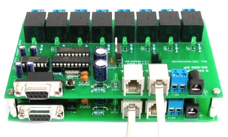 การเชื่อมต่อกับคอมพิวเตอร์ ผ่านพอร์ตอนุกรม (COM/RS-232) โดยพ่วงบอร์ดได้รวม 70 บอร์ด/พอร์ต