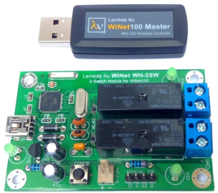 LAMBDA NU WiNet100-S1 เป็นระบบสั่งงานแบบไร้สายผ่าน USB ของคอมพิวเตอร์ที่สามารถควบคุมบอร์ดลูกหลากหลายประเภท เช่นบอร์ดควบคุมสวิตช์ 2 ช่อง (WN-2SW) โดยควบคุมตัวลูกได้จำนวนสูงสุด 2047 ตัว ทั้งแบบทีละตัว หรือจัดเป็นกลุ่ม เพื่อให้ทำงานพร้อมกันได้